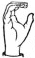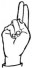 На ћирилици написано КОСТАДИН ПОПАДИЋ састоји се из 15 слова [?]. Исписано ћириличном једноручном азбуком за глувонеме: